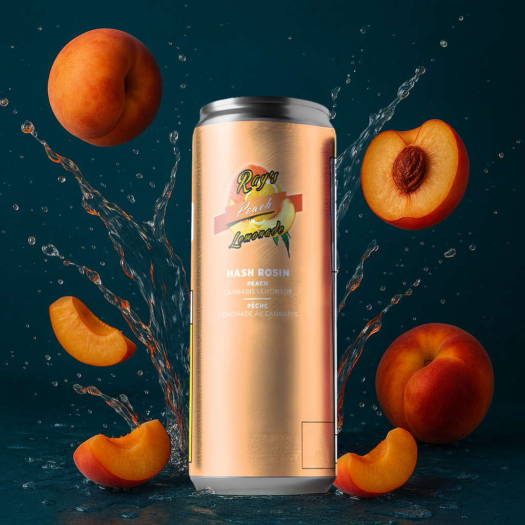 Ray’s Peach Lemonade is packaged in 12oz cans and infused with solventless hash rosin. Different cannabis strains will be paired for Peach Lemonade. Our first batch is infused with Gelato (hybrid) from Constellation Brand.